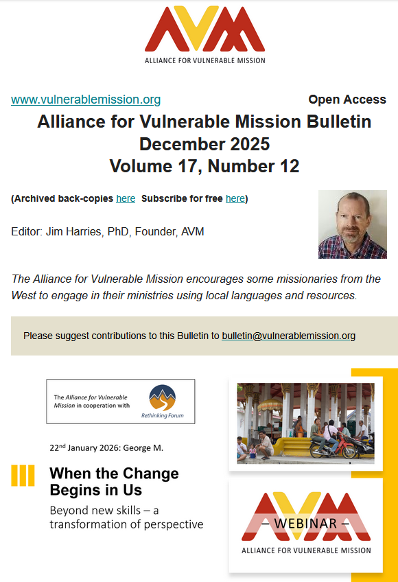 Wir verschicken monatlich ein Bulletin per Email. Darin enthalten sind Nachrichten, Veranstaltungshinweise, Artikel und andere Ressourcen zum Thema Verletzliche Mission. Die neueste Ausgabe kann durch diesen Link abgerufen werden.
